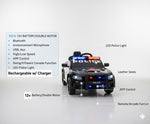 This Dodge Police Car, with its 12 v battery and double motor, offers both high and low speeds for a realistic driving experience. The added features of Bluetooth, USB, and aux allow for music and announcements while the leather seat and swing arcade function enhance comfort and fun. With app and remote parental controls, rechargeable battery, and LED police lights, this car offers endless hours of enjoyment.