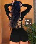 DrawString Long Sleeve Round Neck Bodycon Romper DrawString Long Sleeve Round Neck Bodycon Romper